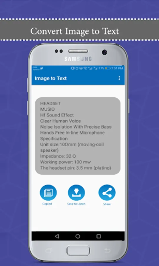 - Share convertible text on any social media platform like Facebook, Twitter etc