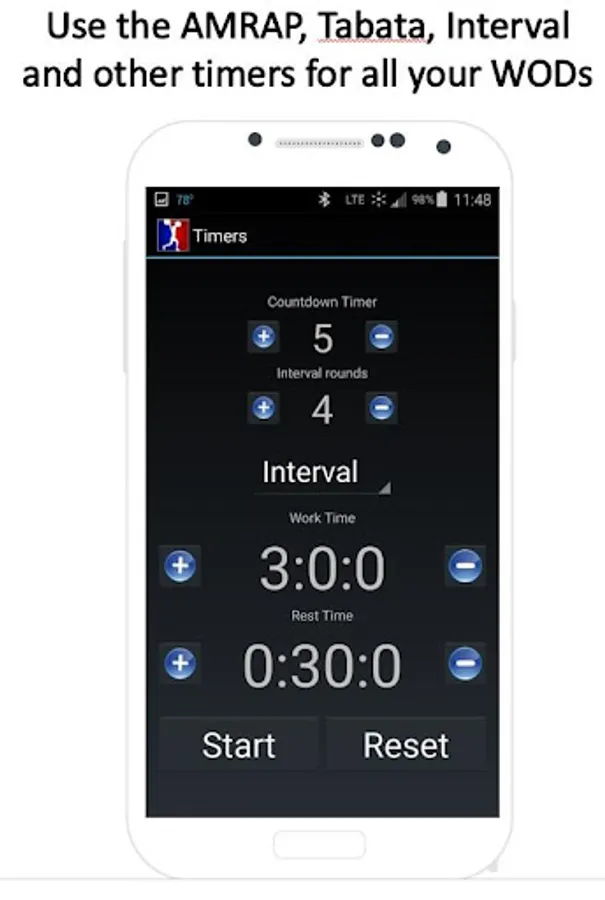 WOD Programmer has every timer a fitness athlete could need, from EMOTM, AMRAP, Tabata, for Time, and now an interval timer where the athlete can set rounds, the amount of work time, and the amount of rest time.