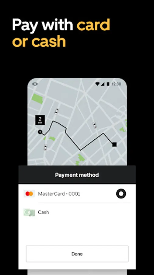 Pay in cash or add a card in the app.