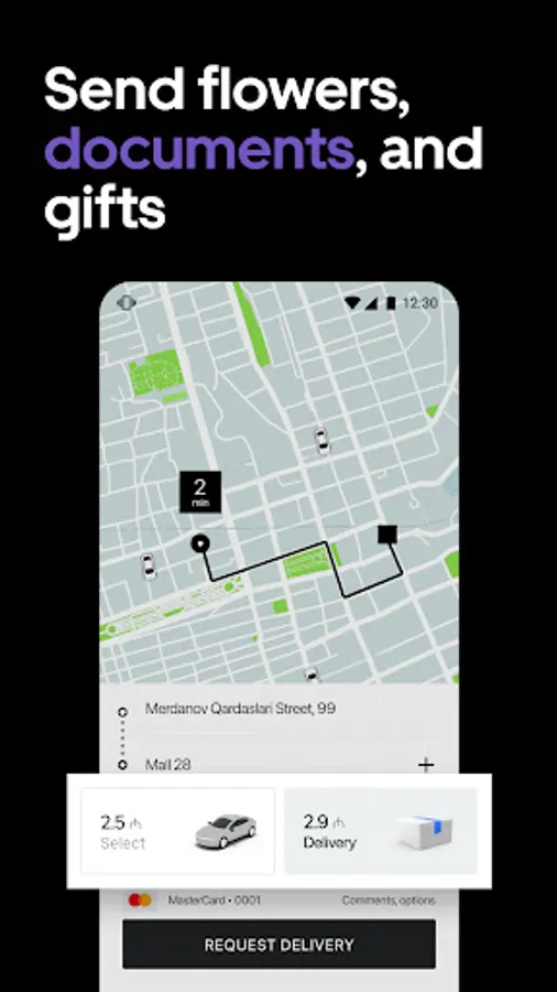 Uber Delivery for delivering small parcels around the city. The courier will arrive by car or moped.