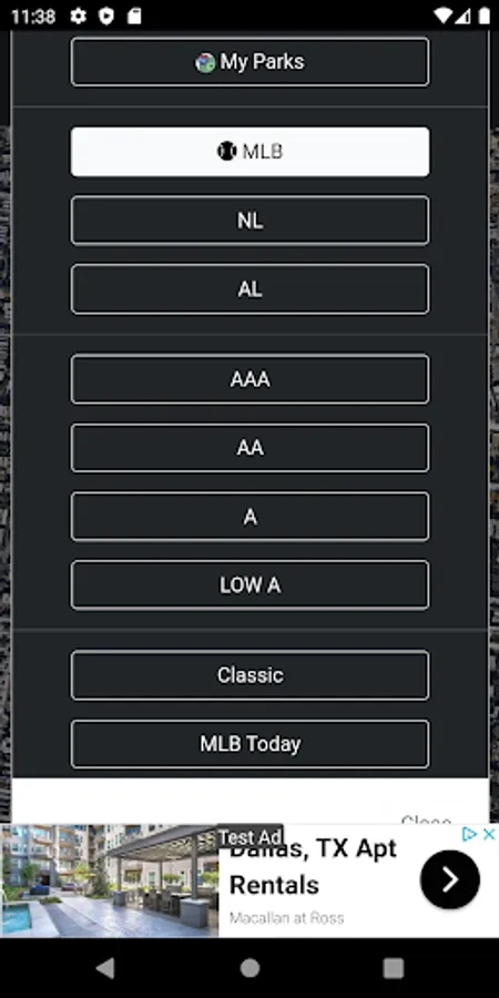 - Indicate "My Parks" that show the ballparks you have visited.