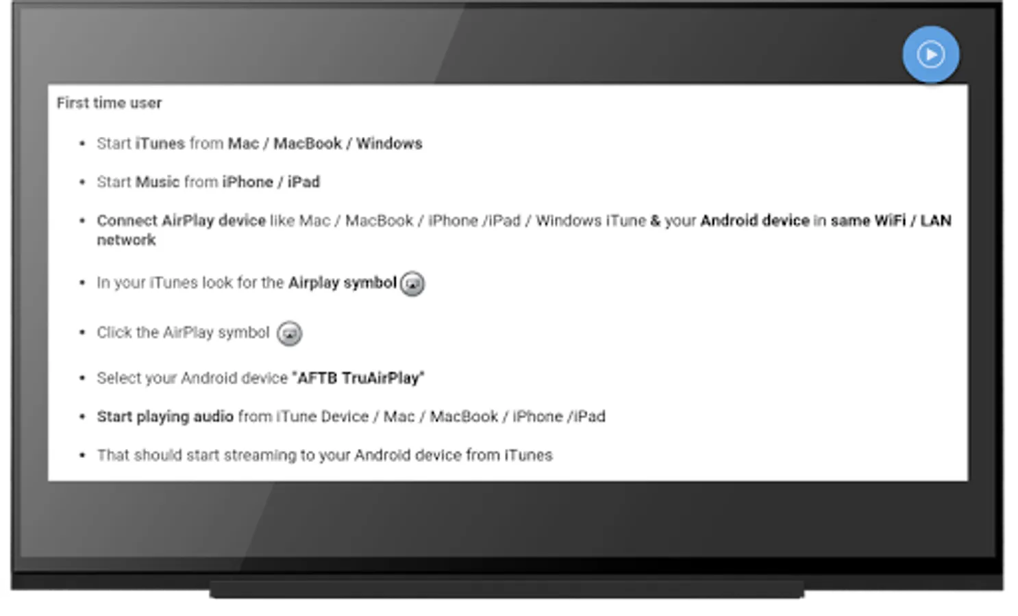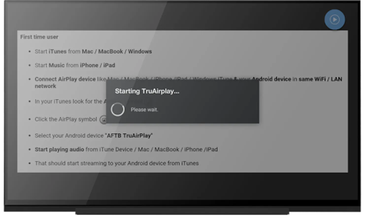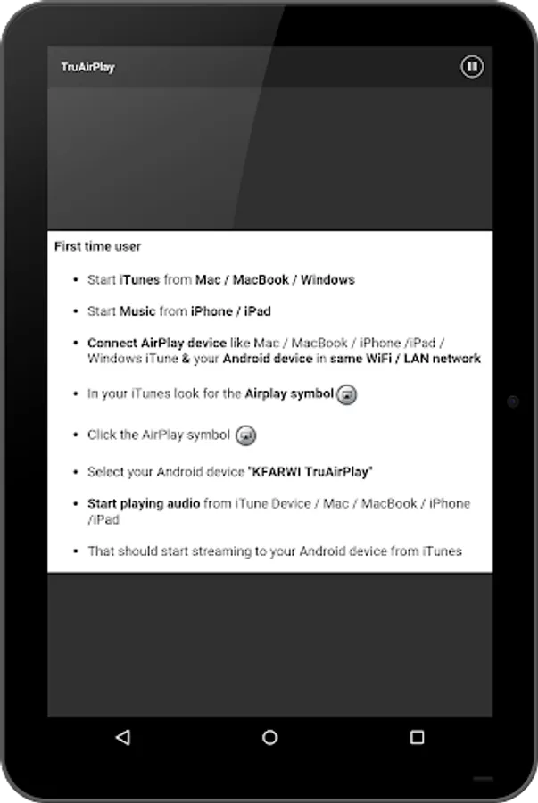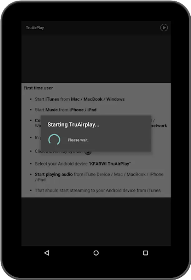 IMPORTANT: before starting the app, make sure Android device & iPhone / iPad / iTunes are connected to a WiFi network.