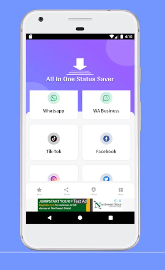 All In One Stats Saver is easy & helpful for those who want to save their favorite images or videos from Whatsapp, Whatsapp Business, TikTok, Instagram, Twitter & Facebook.