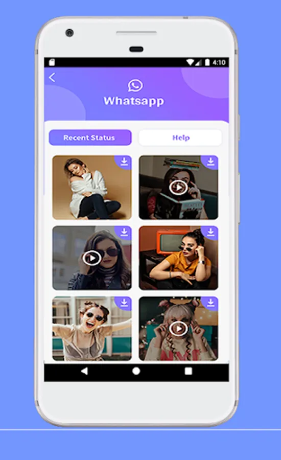 Step 3 : Come Back to this app & Click on WhatsApps or WA Business button. It’s display all image or video status in recent status tab. Then click on the status. It’s display and click on Download Button for save status.
