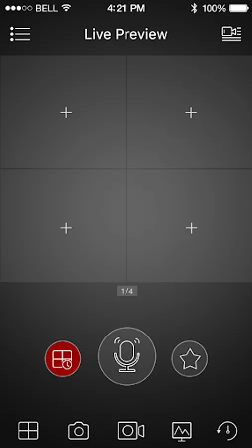 - Live: Direct view of images taken by the cameras, two-way audio, speed dome movement, creation of favorite displays