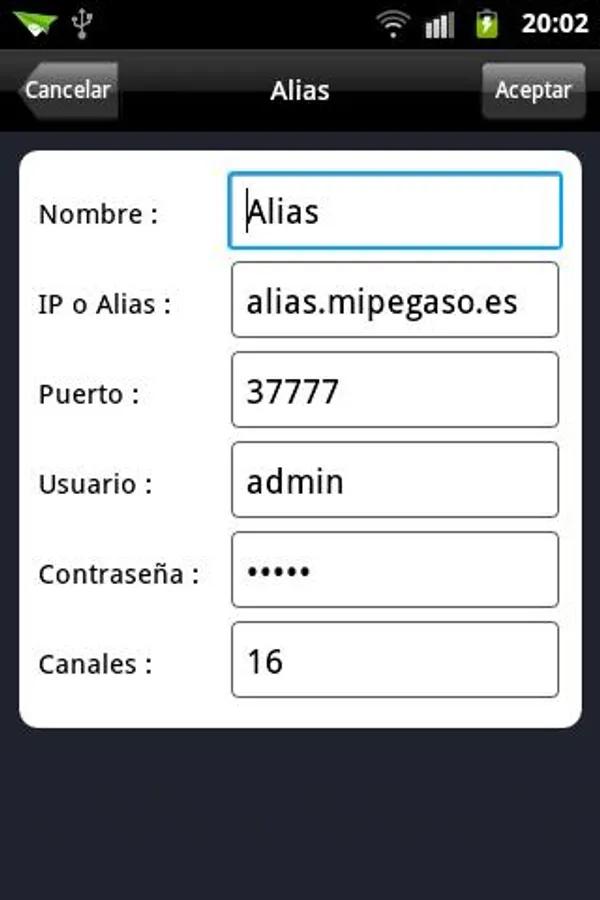 IPTecno App for connection to PEGASO DVR Series.