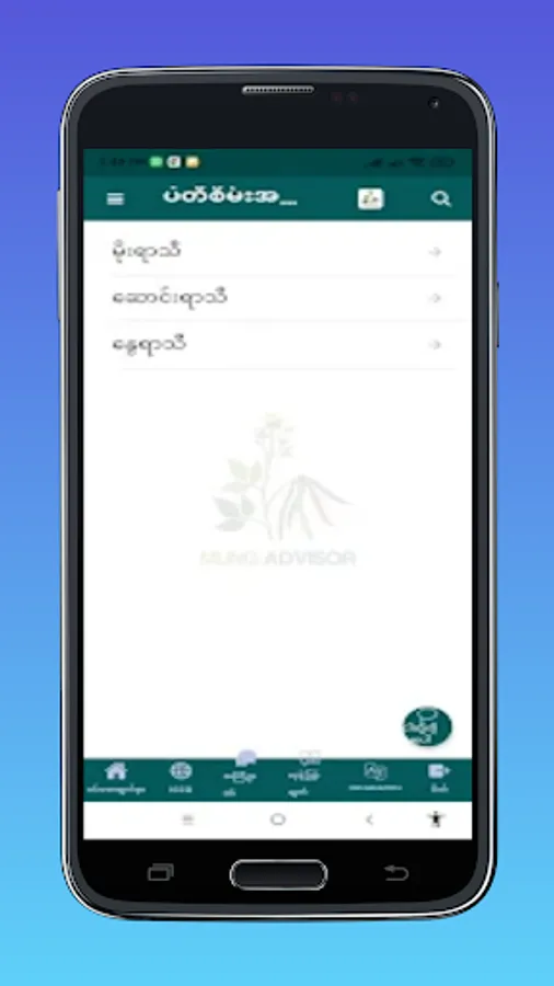 The application is originally based on the Mung Advisor app developed by ICAR-Indian Institute of Pulses Research (IIPR). This is a bilingual App in English and Burmese and provides season-specific guidance of improved varieties, cultural practices, crop management, pests and diseases & their management, post-harvest technology, and marketing in Myanmar. Efforts are done by WorldVeg in collaboration with DAR to develop a Burmese version of the App with details including varieties relevant for Myanmar farmers and climatic conditions.