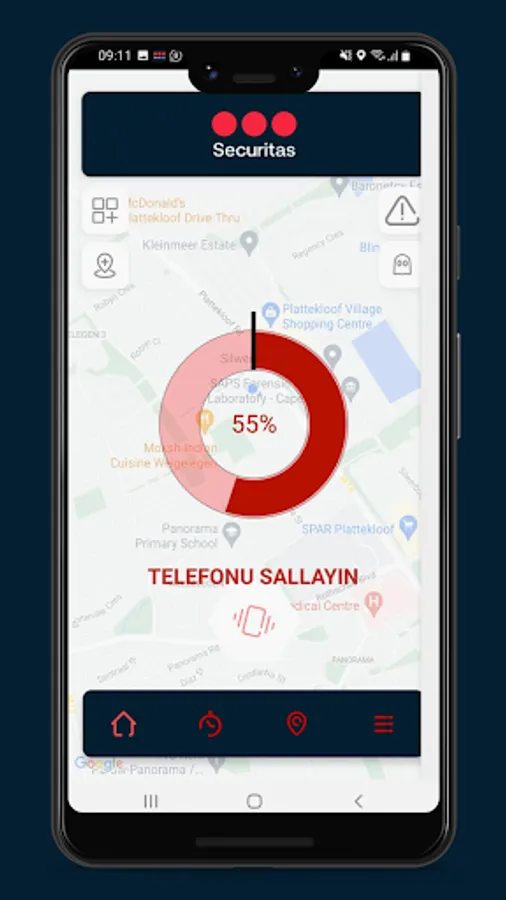 Members provided for the user application before any risky situation can start opening to transmit location information to the Remote Monitoring Center Securitas and can transmit any event if the only shaking the phone or touch the screen to slide the emergency alarm center. Phone this alarm during the transmission to the monitoring center by making short video footage, so a better understanding of providing event image of the state were also recorded olur.uygul intervening Meeting and Travel using functions can provide information on your and monitoring center near the pre-risk situations in an emergency you can help you be more accessible .