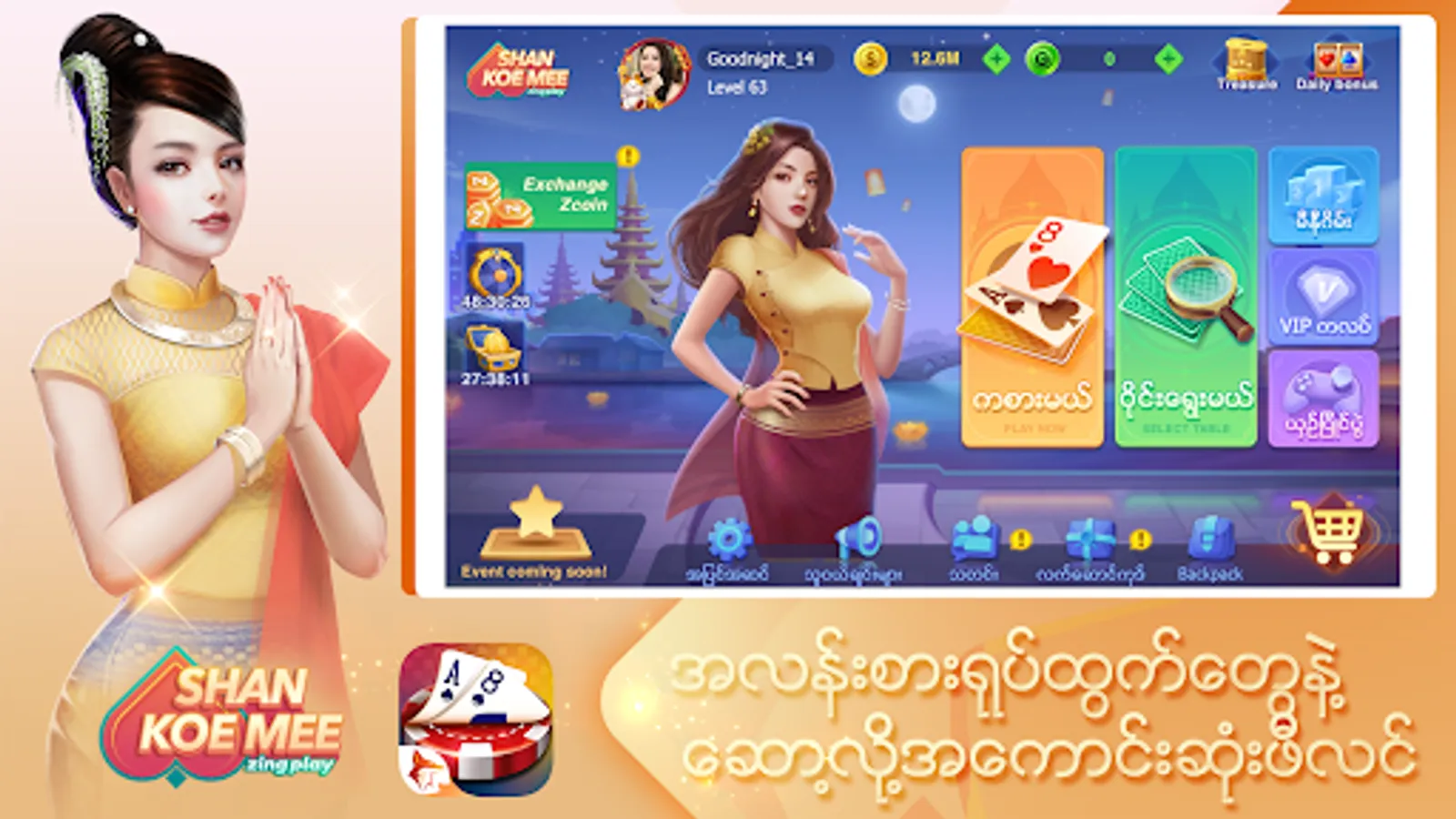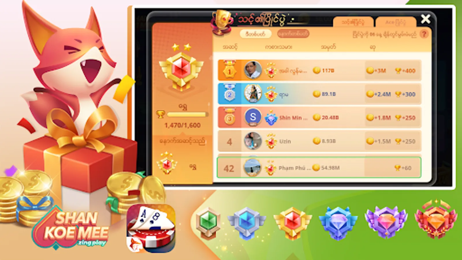ZingPlay Myanmar ရဲ႕ ဂိမ္းေတြထဲက Shan Koe Mee ဂိမ္း သည္ လူႀကိဳက္အမ်ားဆံုး ဂိမ္းတစ္ခုျဖစ္ပါသည္။ ZingPlay Myanmar ဆိုသည္မွာ ဂိမ္းမ်ားကို တစ္ေနရာတည္းတြင္ ေဆာ့ႏိုင္တဲ့ ဂိမ္း portal တစ္ခုျဖစ္ပါသည္။ ဂိမ္းမ်ားကို Android တြင္သာမက အျခား platform မ်ားမွာလည္း အဆင္ေျပေျပ ရယူကစားႏိုင္ပါသည္။