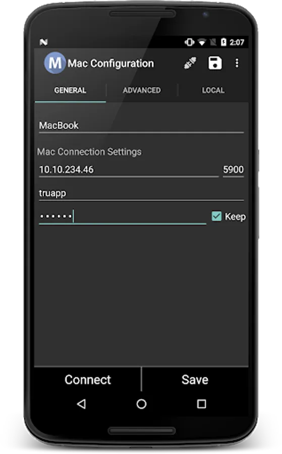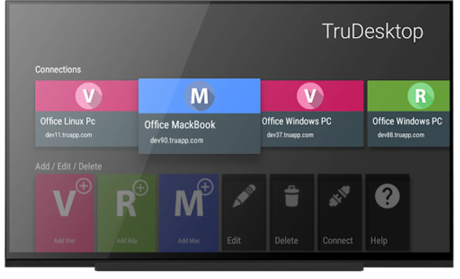 It supports remote controlling from TruDesktop application installed on other Android devices on same WiFi network.