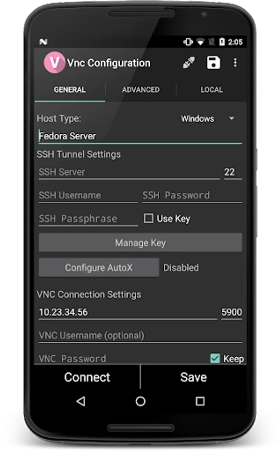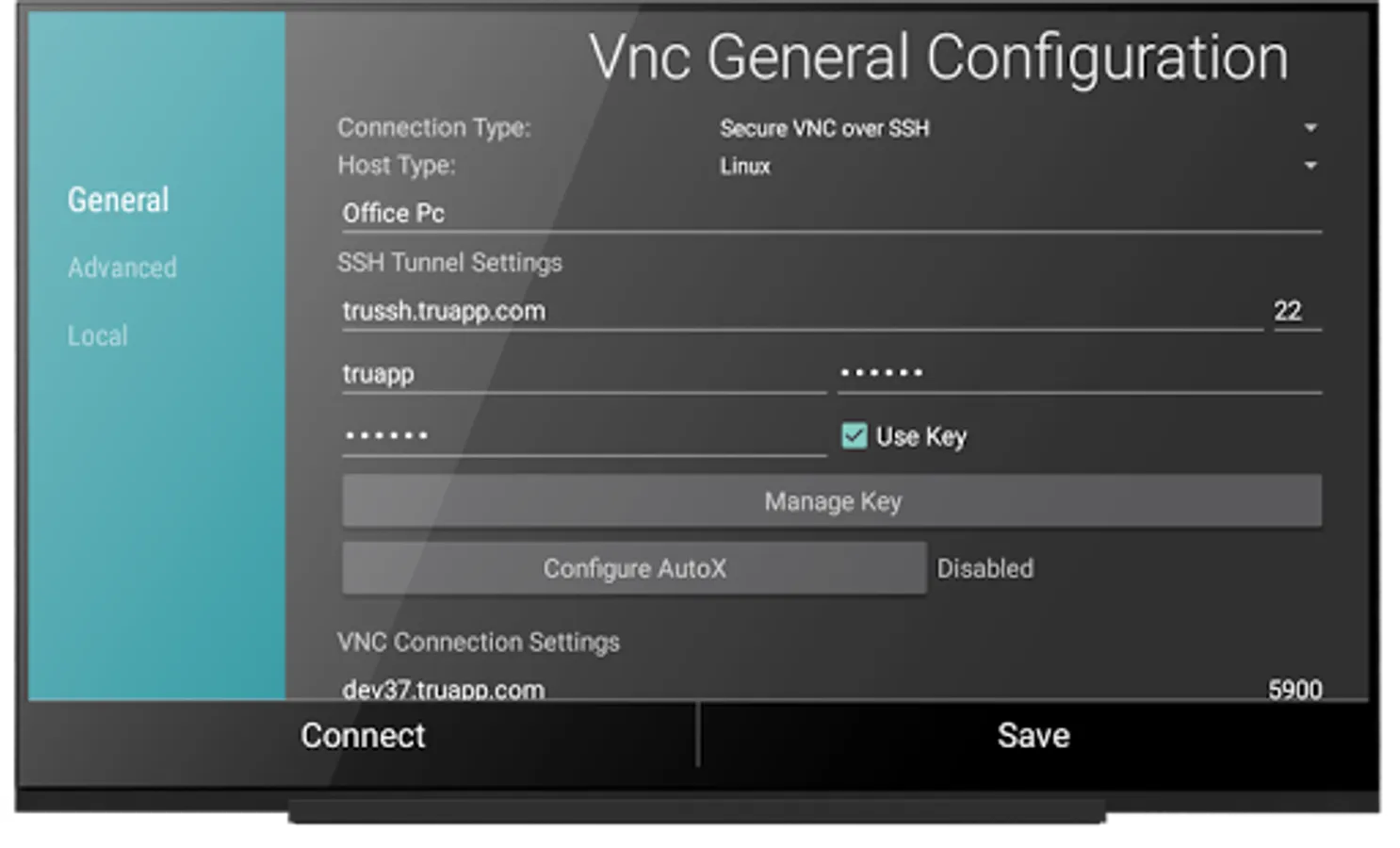 ✓ AnonTLS and VeNCrypt for secure connections (does not support RealVNC encryption).