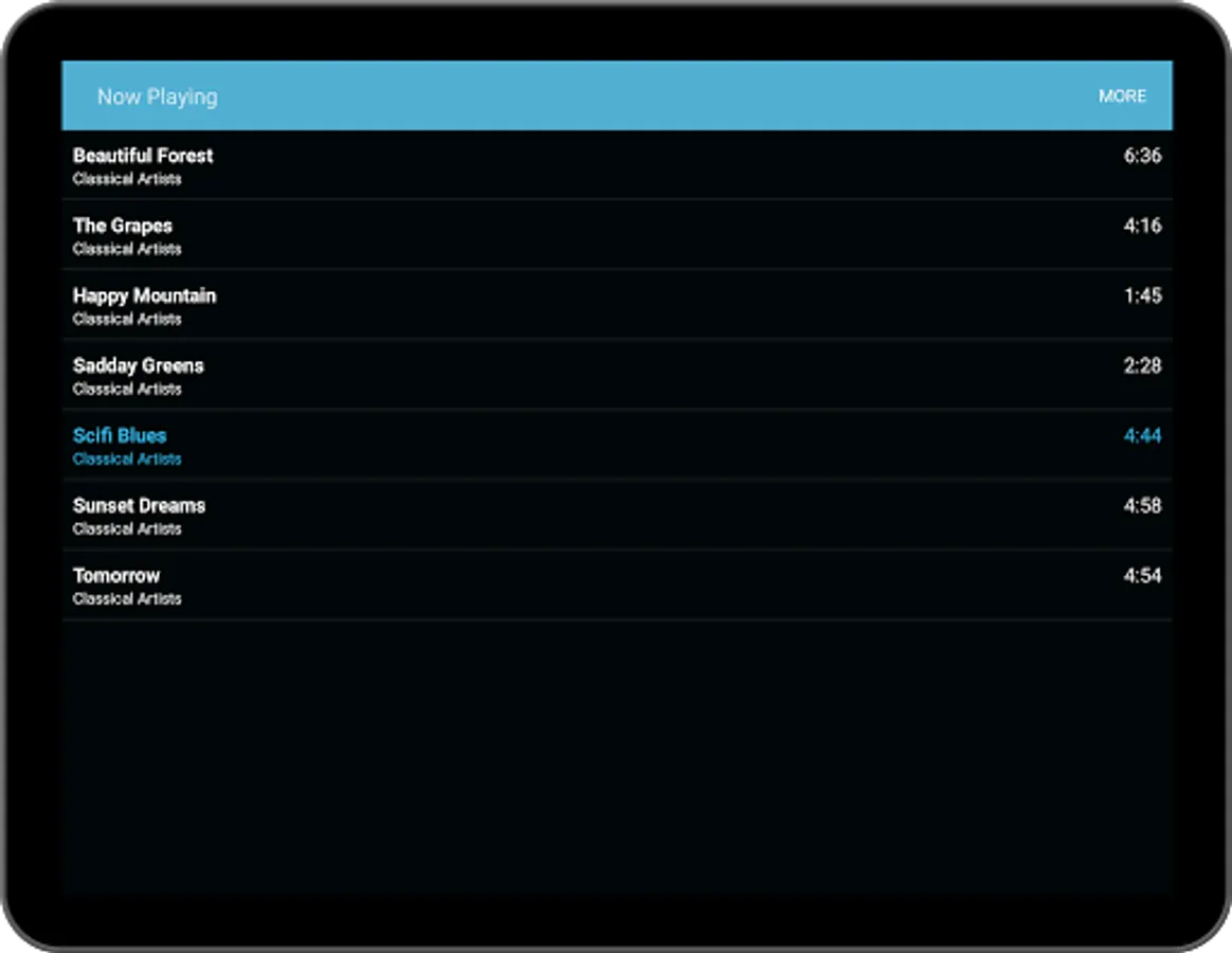 • Browse by Artist, Genre, Album, Playlists
