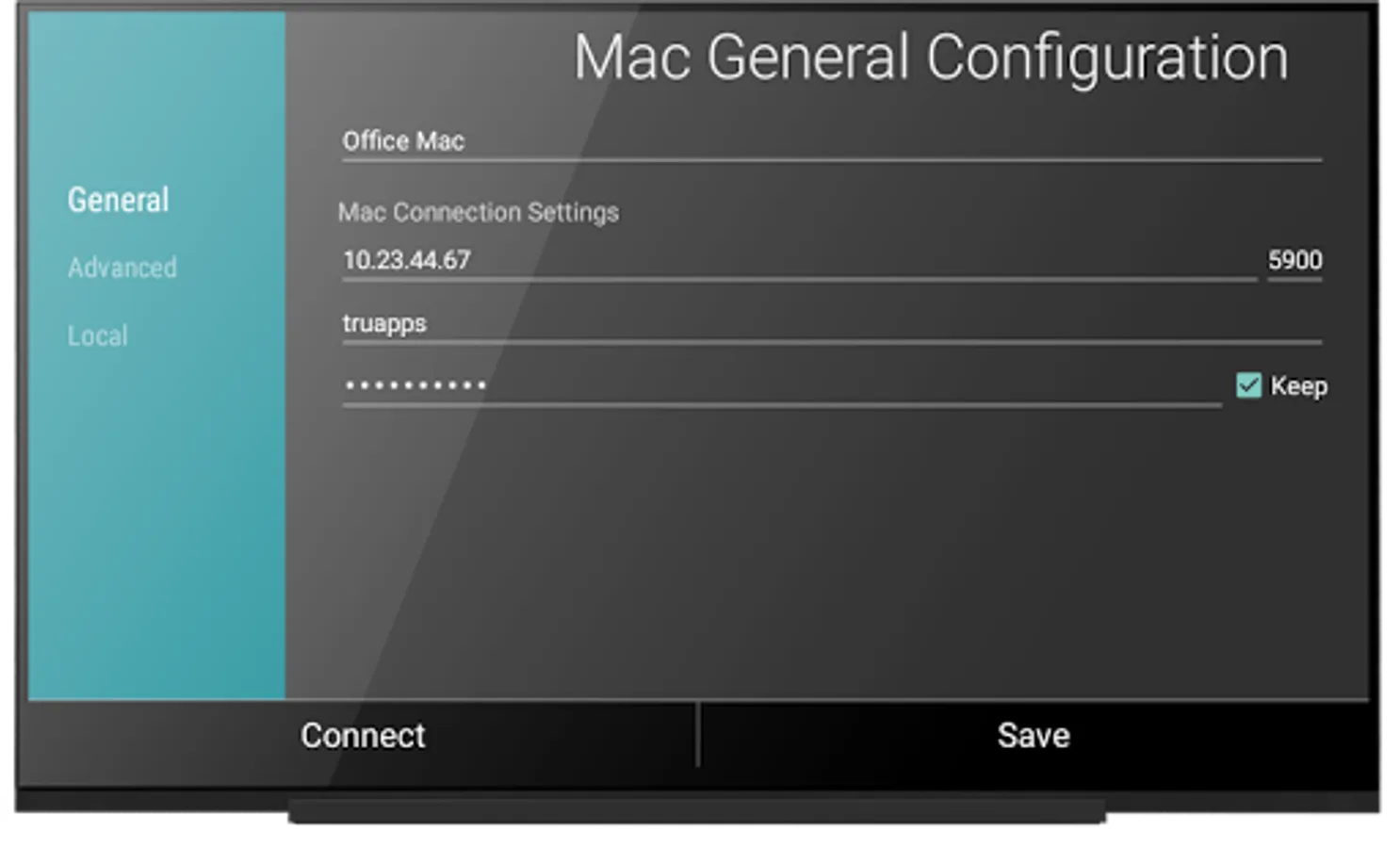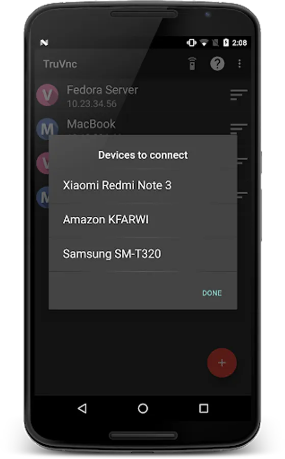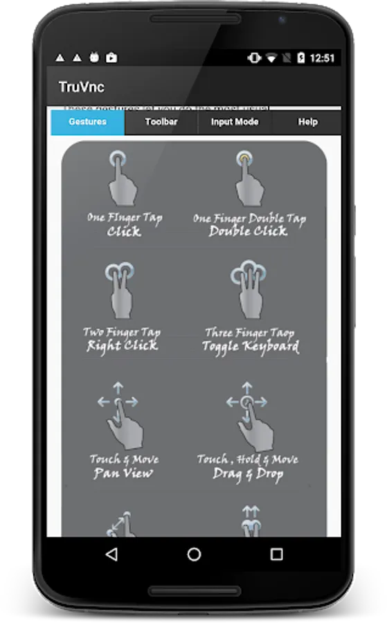 It supports remote controlling from TruVnc application installed on other Android devices on same WiFi network.