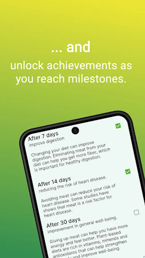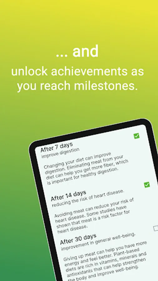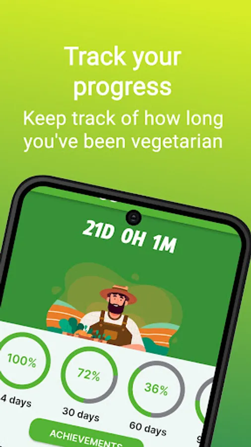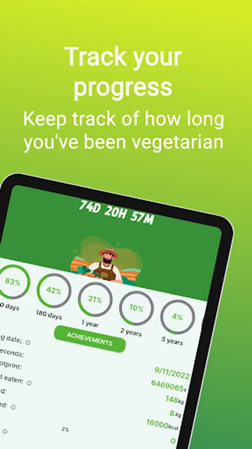 The app's main feature is its progress tracker. With it, you can keep track of how long you've been vegetarian and unlock achievements as you reach milestones. This feature is a great way to stay motivated and see the progress you've made over time.