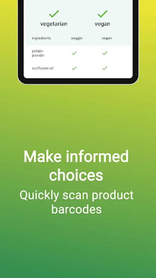 Another useful feature is the product scanner. By scanning product barcodes, you can quickly determine if a product is vegan or vegetarian, making it easy to make informed choices about what you're eating.