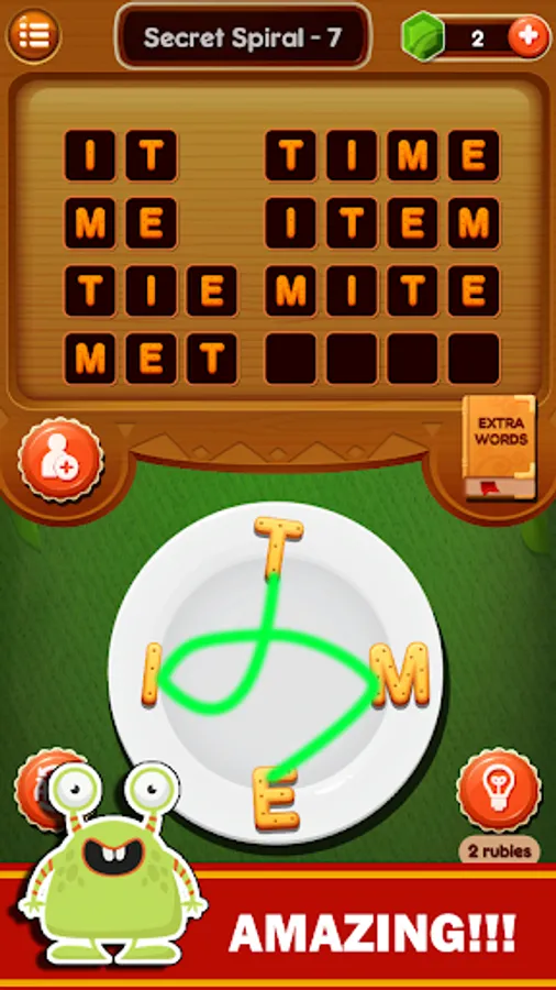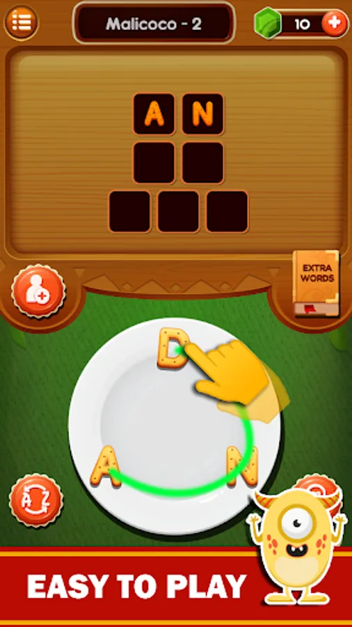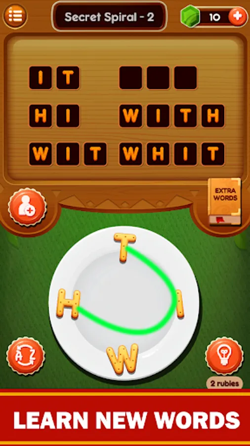 - Find as many words as possible to unlock levels and earn extra bonus coins.