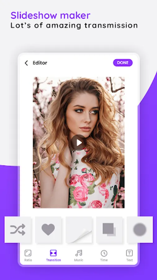 ★ Add music to the slideshow, easily select the music you love to add to the video.
