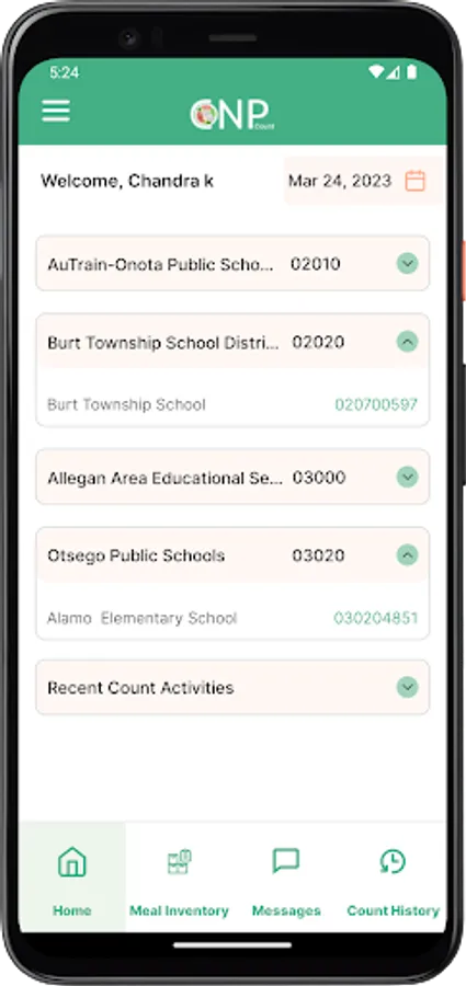 The CNP Count Mobile Application is a robust point-of-service meal service management system supporting several Child Nutrition Programs. It has a mobile application interface and a Backoffice interface to help manage Meal Inventory, register Meal counts, Consolidate Month Claims and much more.