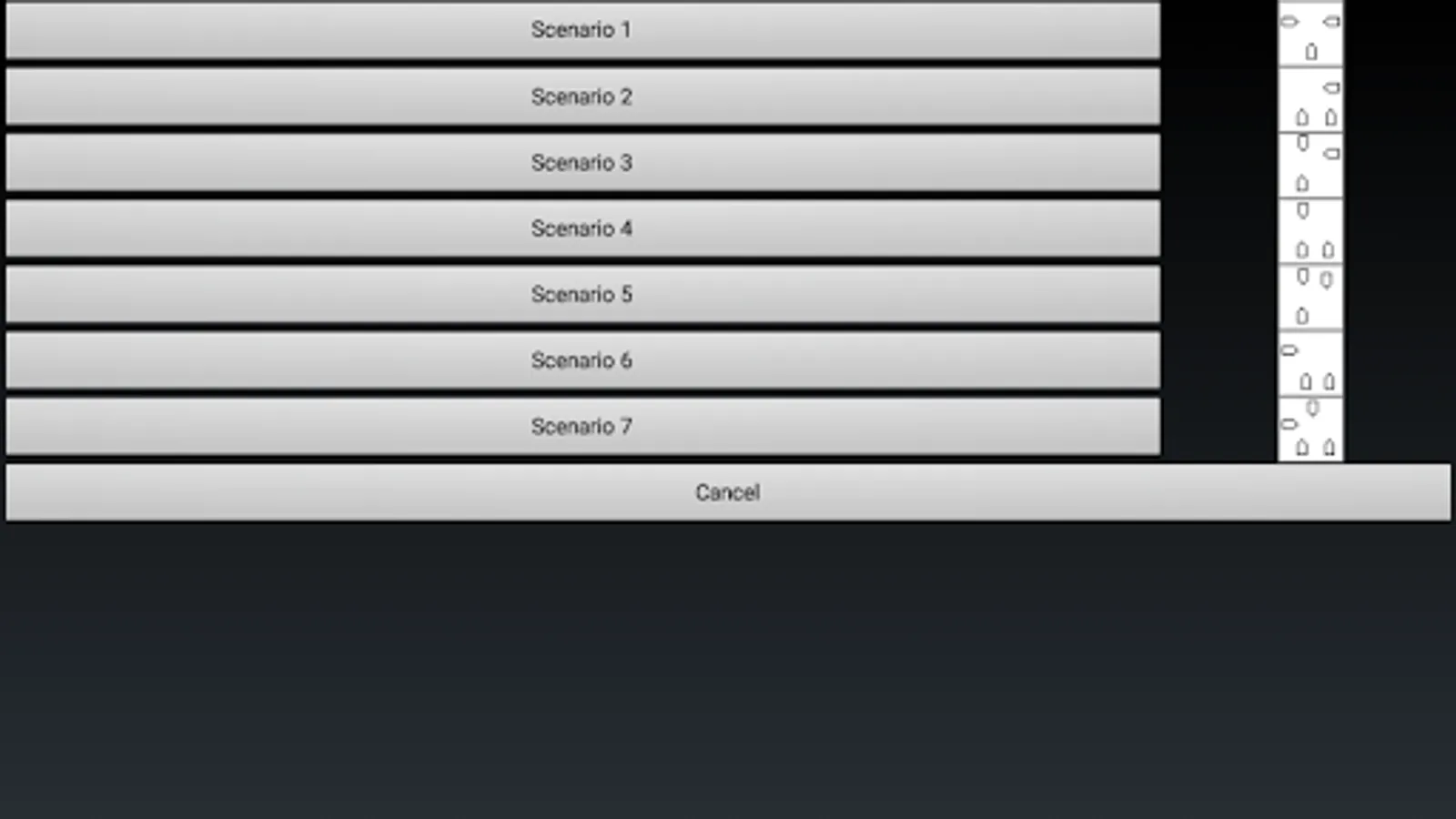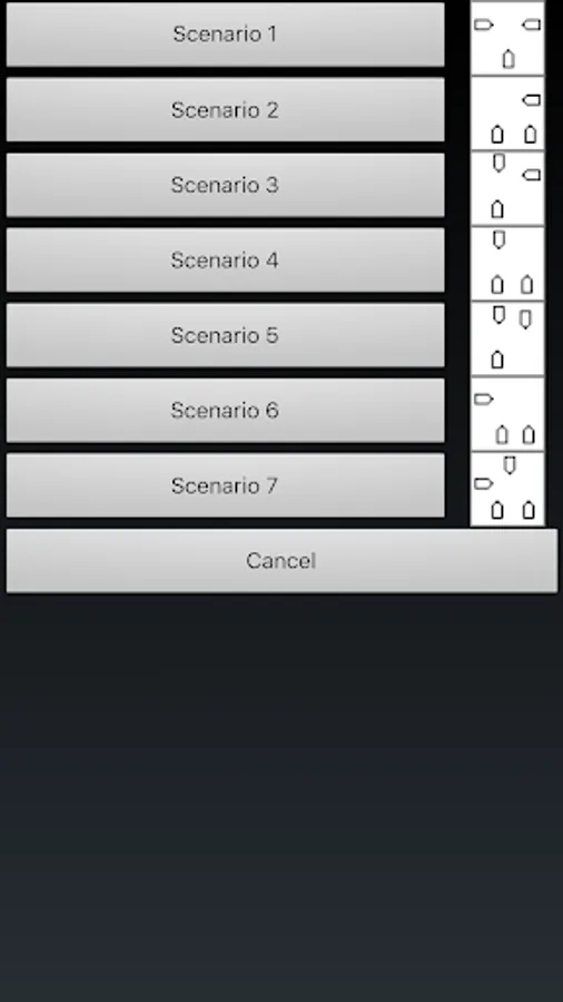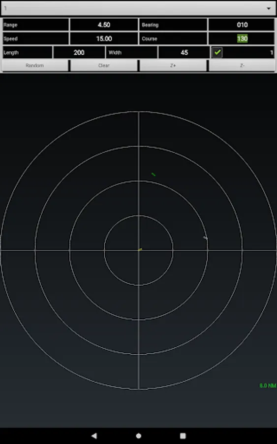 The app also contains an ARPA scenario chooser: there are 7 pre-defined scenarios to choose from. When you select one of these, the target ships are automatically setup, in scenarios that put your own ship in a close quarter situation. You then have to decide what to do to put your vessel back in a safe condition.