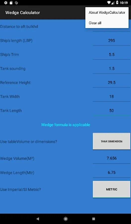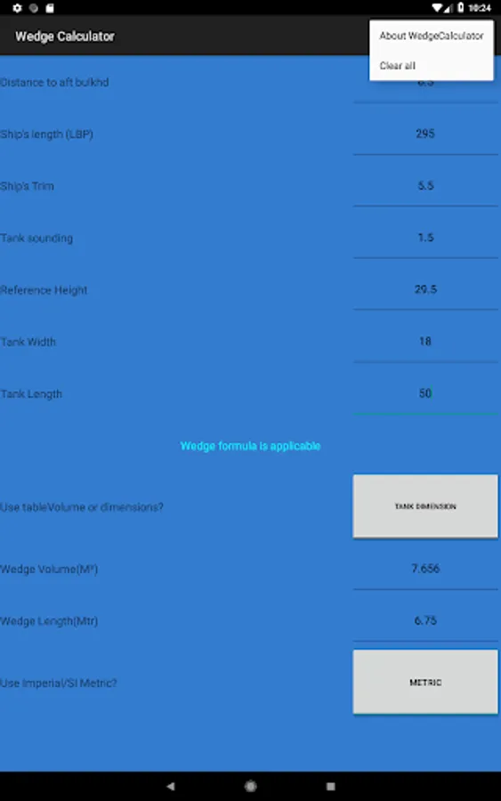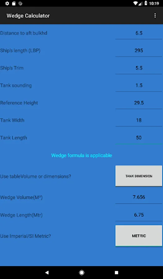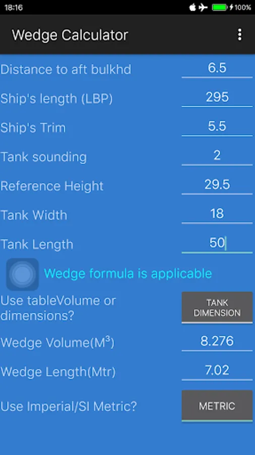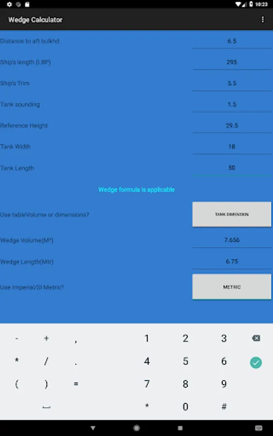 Wedge Calculator is a standalone app for calculating ROB in cargo tanks using the wedge formula.