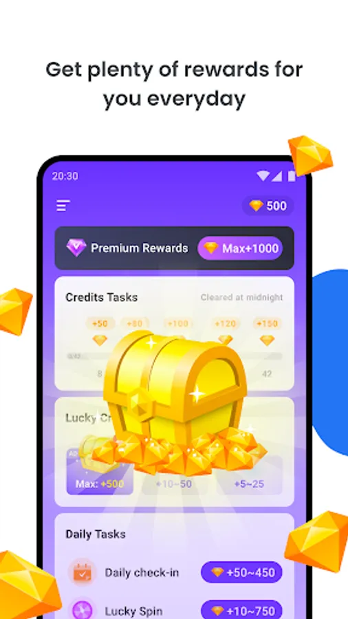 You have many choices to earn credit, and the simplest way just needs one tap on the screen. Earn more credits via completing some fun tasks.