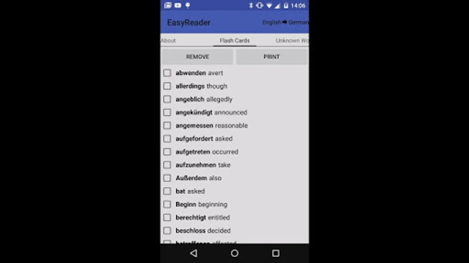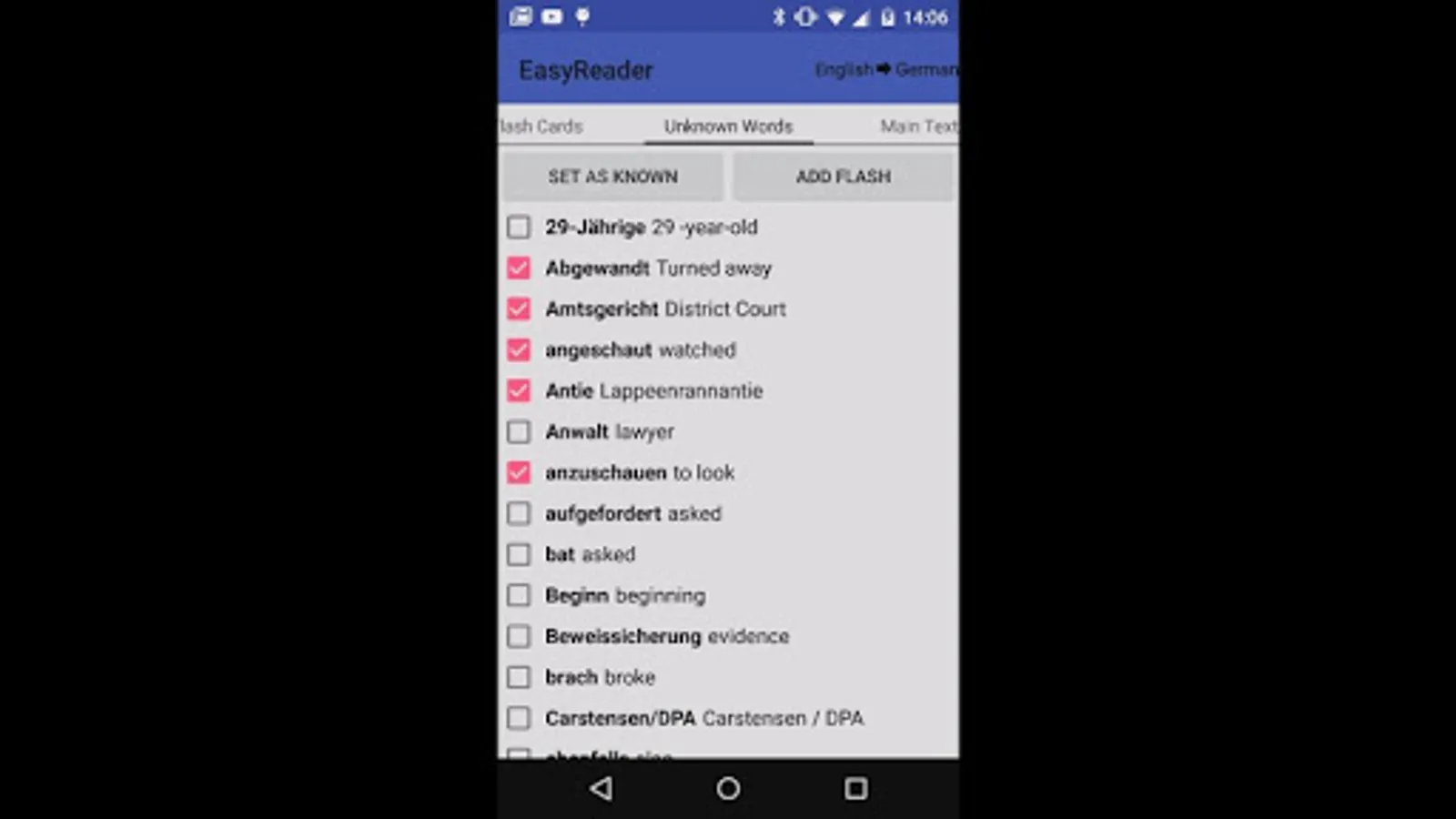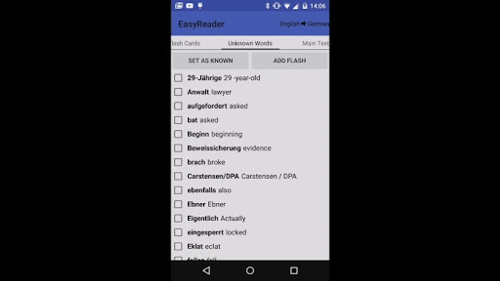 Each passage you read will have new words. Some you know, some you don't. Tell EasyReader which ones you know and it'll just give you translations for the ones you don't.