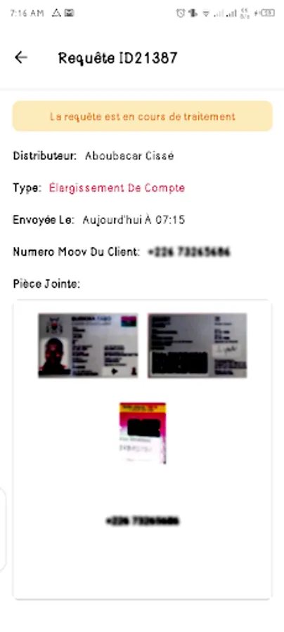 The application allows distributors to send queries for problems often encountered during Moov operations such as, blocked account, account expansion, identification, etc.