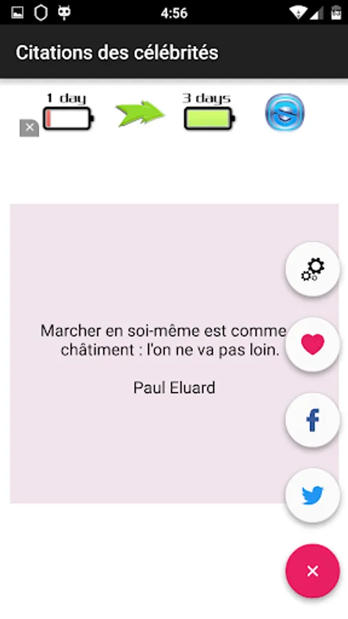 You have trouble at all suivres? Applying Best Quotes suit you perfectly because it brings together the best sites offering this content. This application contains over 90,000 quotations, proverbs and various fun facts!