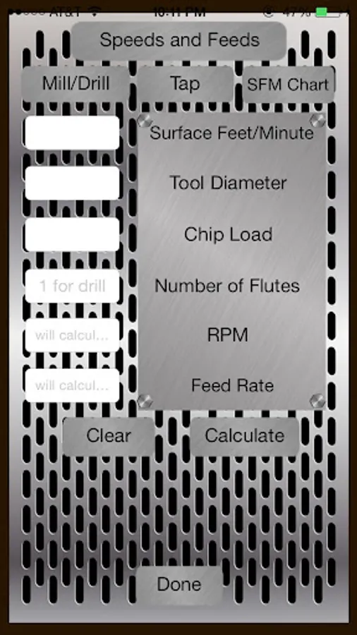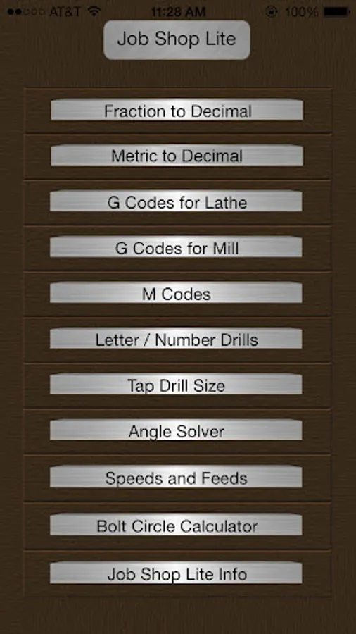 Are you a metal working professional? Job Shop Lite has more of the information you use on a daily basis than you'll find anywhere. Things like drill sizes, tap drill sizes, g and m codes as well as angle and speed and feed calculators, and a bolt circle calculator. A real time saver, You won't find a more helpful app.