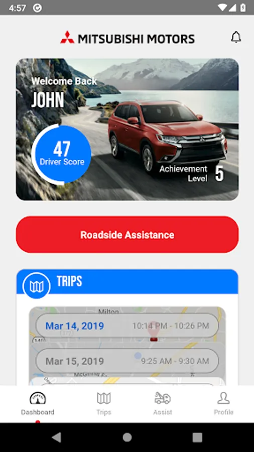 Mitsubishi Motors Road Assist+ app is all about peace of mind and improving your driving experience. We’ll send help in the event of a vehicle breakdown. The app is loaded with technology (GPS, sensors and Driving Signature) to give you access to request auto insurance quotes from participating carriers and exclusive Mitsubishi offers. It’s easy to begin; you can download and self-register right in the app. Please note you will need to set-up your registration which is separate from your user name and password on the Mitsubishi Motors Owners site.