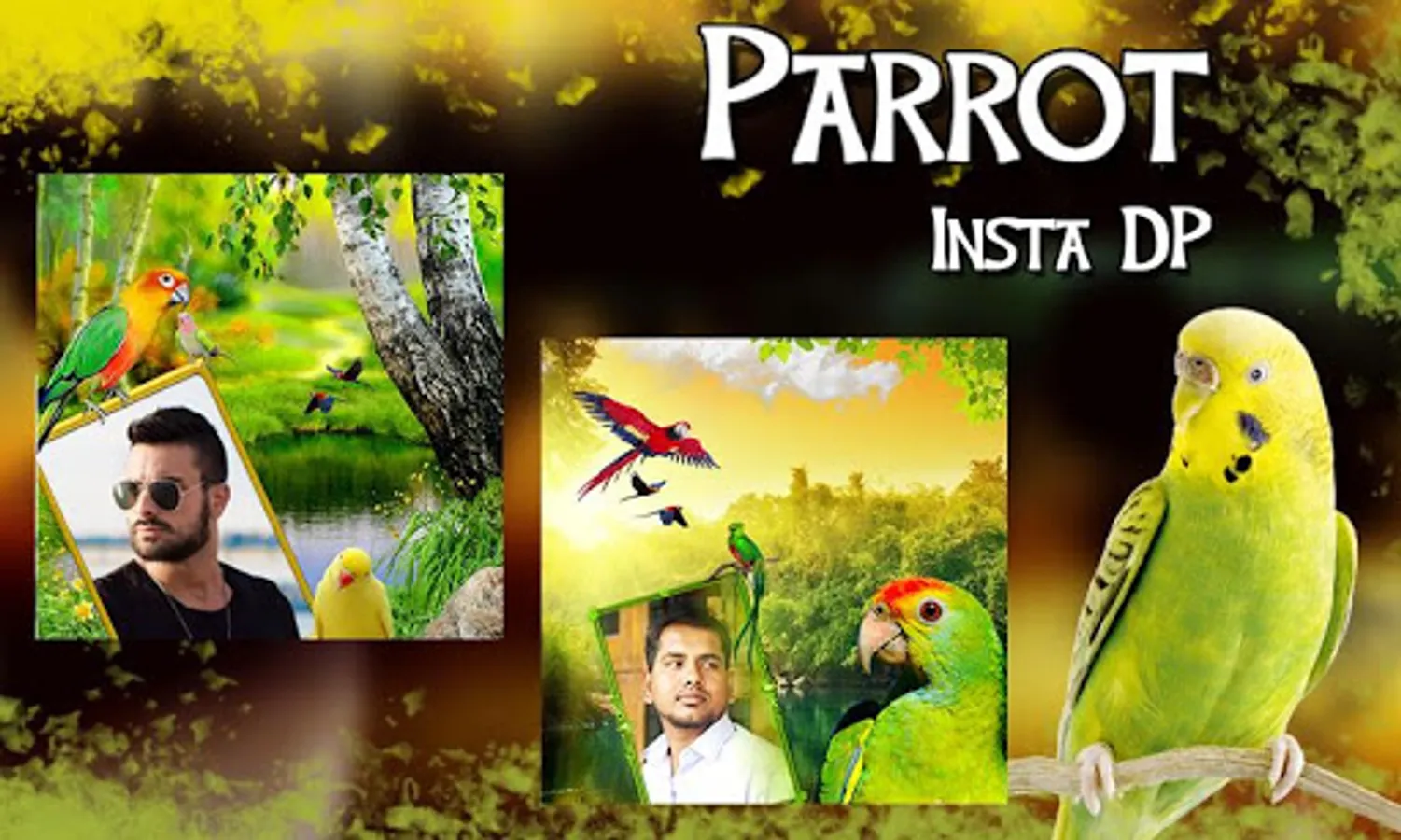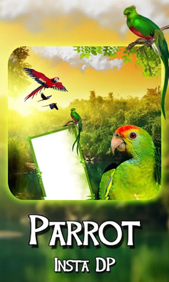 Make your best DP or Profile pic using Love birds theme of Parrot Insta DP Maker app. This app contains beautiful Garden Photo frame with beautiful Parrot in it them. You have been provided a space to place your photo in the Parrot Insta DP frame. You just need to download and install this Free Love birds themed Parrot Insta DP maker app. Give your old photos a new look and use it as your profile pic or DP. You can also post the Parrot Insta DP with your photo on social media for more likes and comments