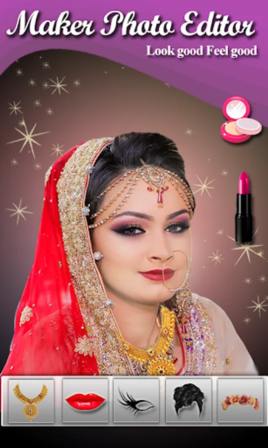 Woman Make up Saloon Photo editor is the best way to decorate your photo. Using this Woman Make Up Saloon App you can add variety of things on your photo like Jhumkas, MaangTika, Necklace, Eye lashes, Hair style, Hats,Flower crown, Sun glasses. These things will make your photo look more beautiful. You can now make your looks stylish without spending money on beauty parlour. Make your best DP using this app and post it on social media for more likes and comment s. Download and install this free app of Woman Make Up Saloon Photo editor. Select a photo of your choice from mobile gallery or click a selfie. Add decorative item on photo . adjust them properly on photo. You can also write name on photo using text on pic option. Save it and share it or use it.