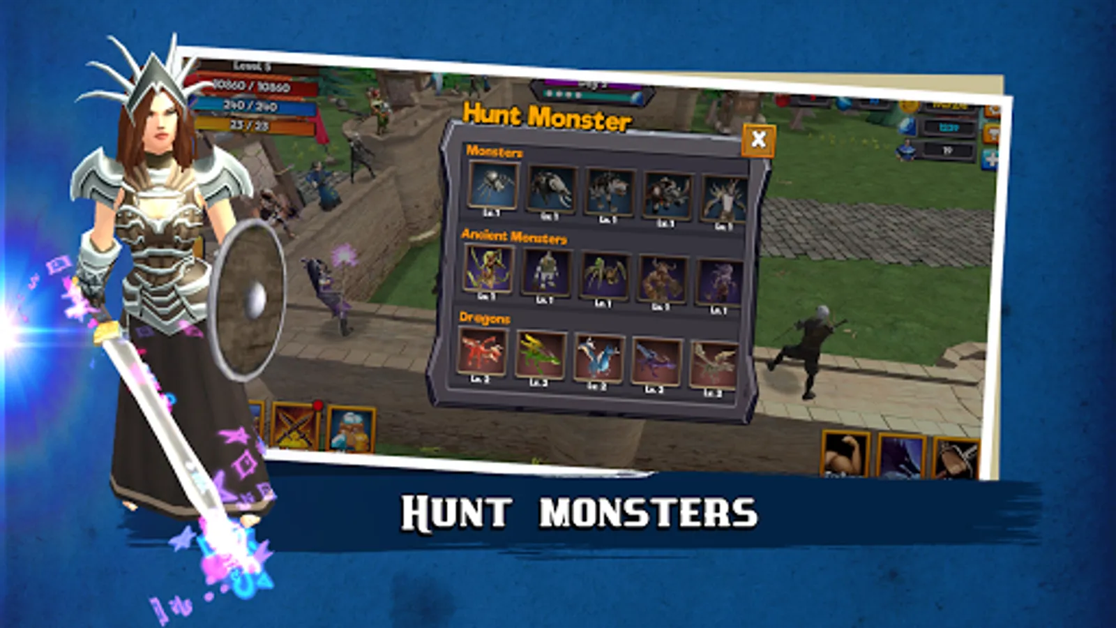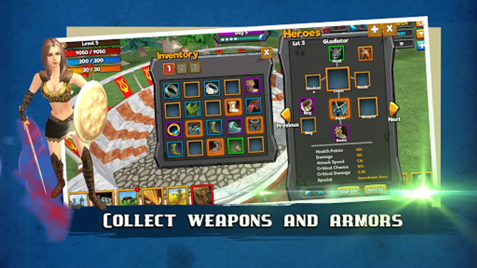 Unlock one of several powerful heroes and upgrade their stats in RPG-style. As you play you win various chests (including legendary ones) to equip your hero with powerful gear.