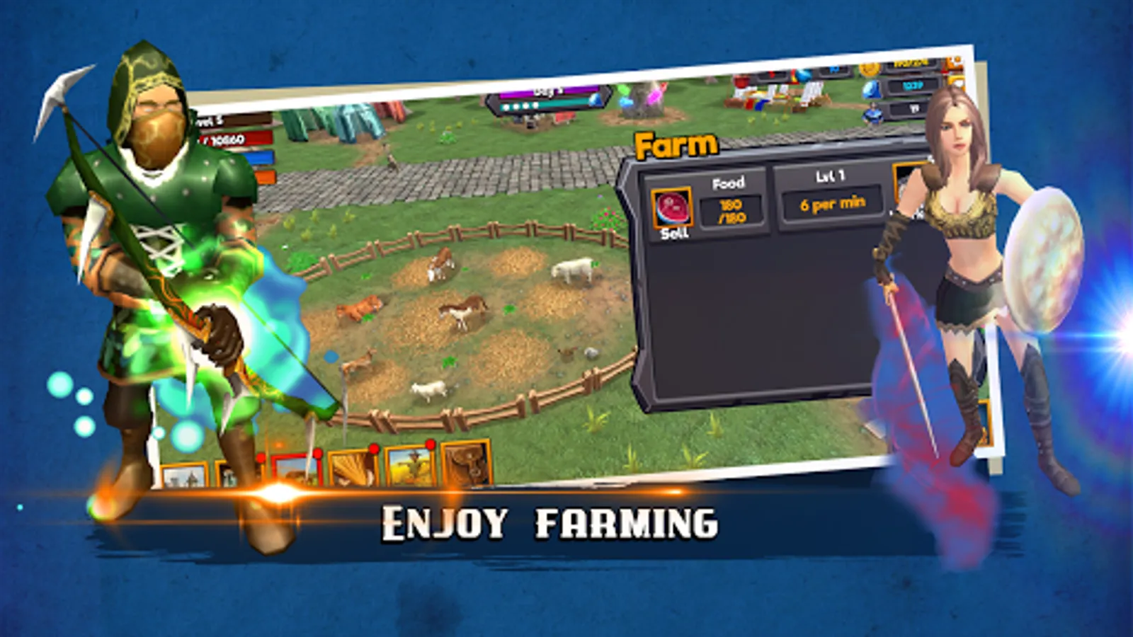 The game includes a mini-farming simulator as well, as you grow, farm and sell food. You also have a magic lab that produces mana and health elixir.
