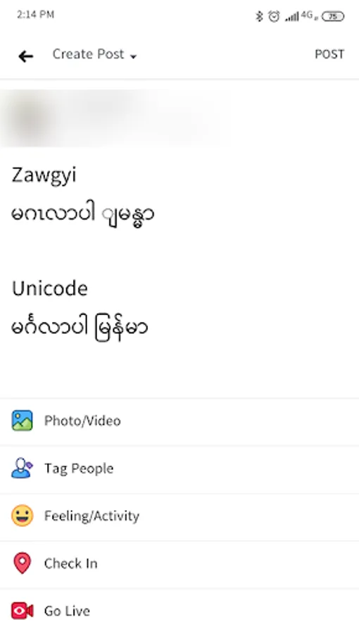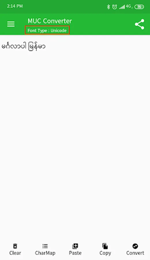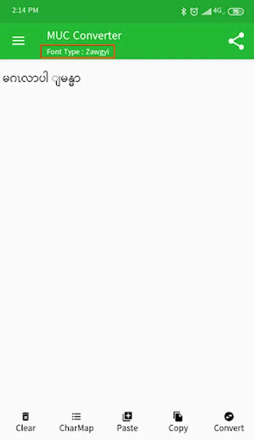 3. "Share" is easy to post in social media with both zawgyi text and unicode text at the same time.