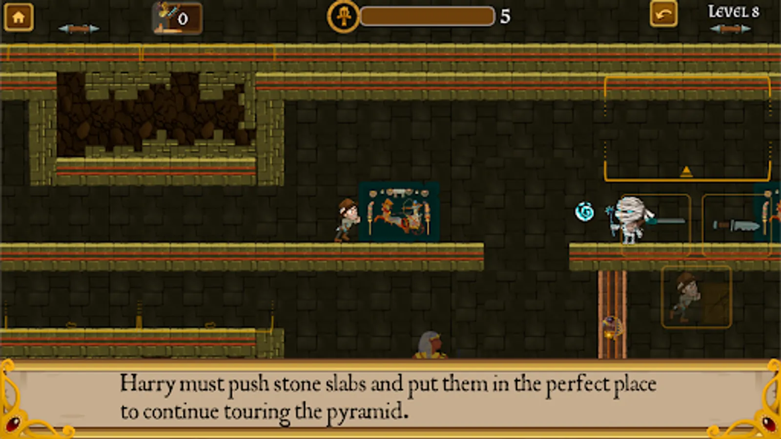 To reach his destination, Harry must overcome the dangers that the pyramid holds.
