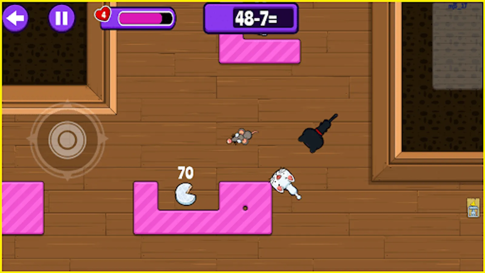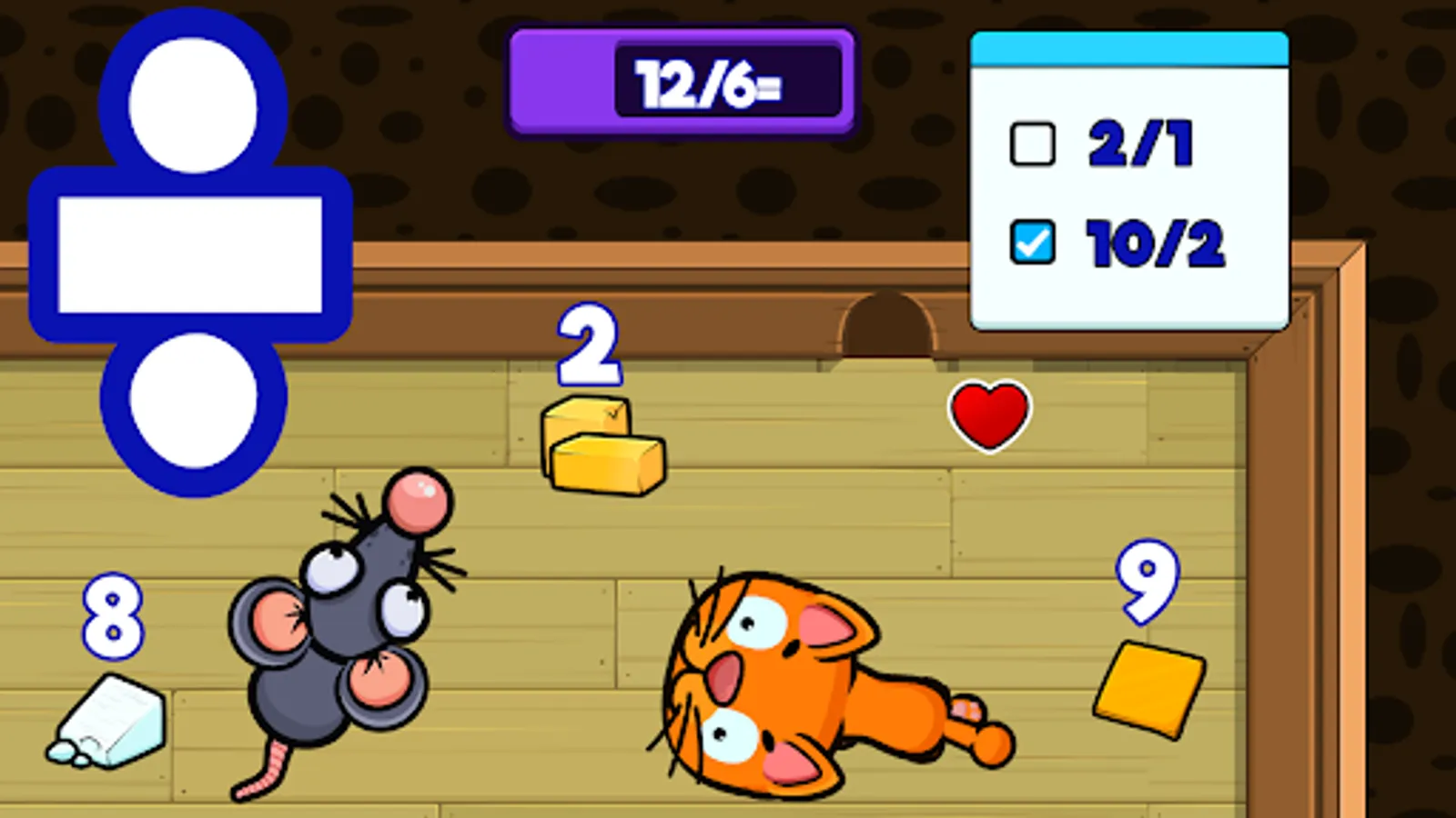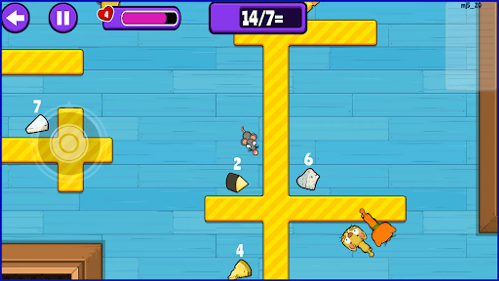 Each level is a unique room where the mouse must collect the right cheeses. But beware! On the way, they will encounter traps for mice and cats that will try to follow them. Solve the operations correctly and guide the mouse to the burrow to successfully complete the game.