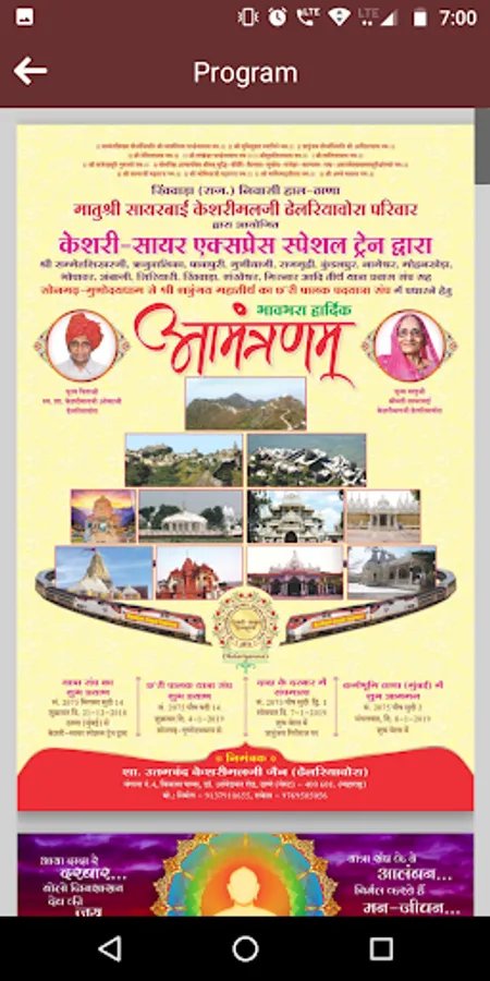 केसरी सायर एक्सप्रेस विशेष ट्रेन द्वारा श्री सम्मेतशिखरजी, गुणियाजी-पावापुरी , कुंडलपुर-राजगृही, श्री नागेश्वर. श्री मोहनखेड़ा, भोपावर तीर्थ, श्री अंबाजी तीर्थ/सिरीयारी, श्री खिंवाड़ा (बालाजी नगरी), श्री शंखेश्वर तीर्थ, श्री गिरनार तीर्थ, श्री पालीताणा तीर्थ यात्रा।