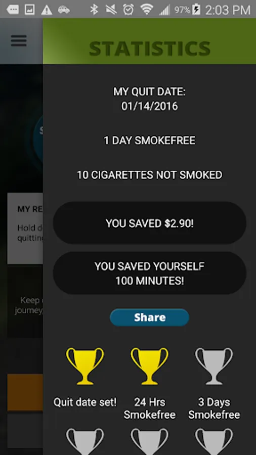 QuitGuide is a free smartphone app that can help you quit smoking. You can track your cigarette cravings and moods, monitor your progress toward achieving smokefree milestones, discover your reasons for quitting smoking, identify smoking triggers and develop strategies to deal with them, get expert guidance on how to quit smoking and address nicotine withdrawal, and access a variety of other strategies to help you successfully become and stay smokefree.
