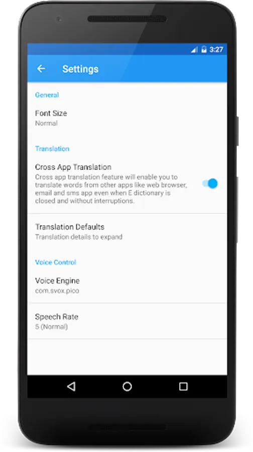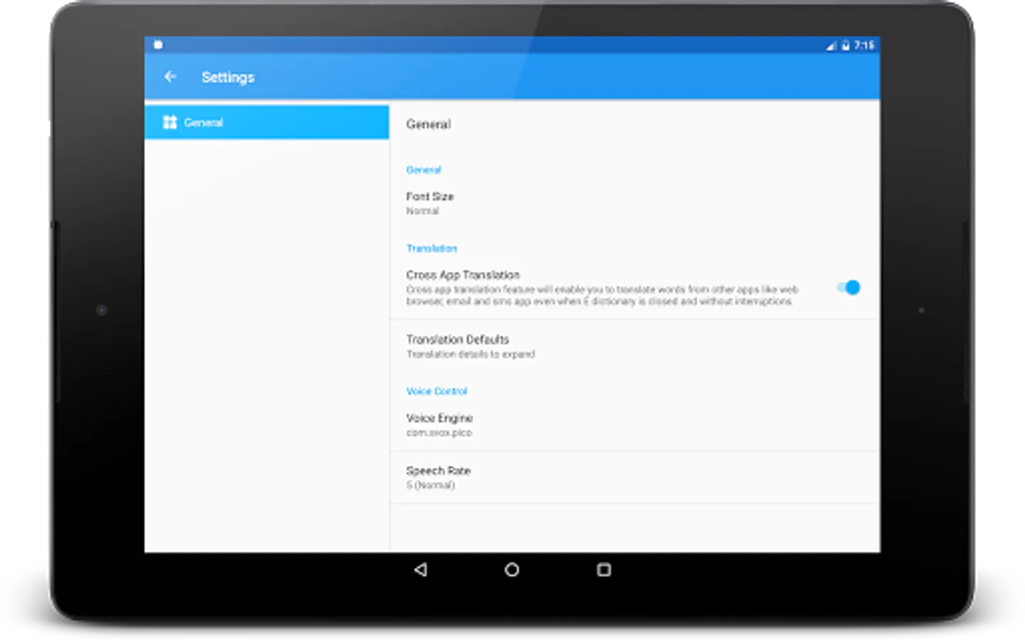 - Cross apps translation to translated from other apps like web browser, mail or sms without opening the dictionary and without interruptions