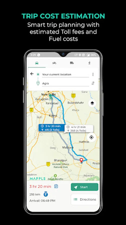 Find and navigate with step-by-step voice-guided directions to the doorsteps destination with live traffic updates, ETA along your route easily using Mappls App. Also, a very unique feature of Mappls is a digital address and location identity system, Mappls ID.
