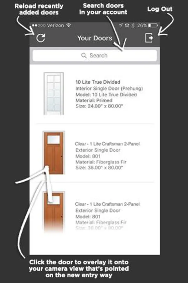 With the MMI DOOR App, you have the ability to take doors saved in your wish list and show them on your home. Start by creating an account on mmidoor.com. Next, you will configure the door(s) you are interested in and save to your wish list. Once saved to your wish list, go to the App store and download our MMI DOOR App. After the app is installed, login to your account and open up the door. Your phone will then display the door image through your camera. Place the new door image over your existing door and resize to fit. Snap the photo and save the image. You have the ability to share it with friends and family or save it for later.