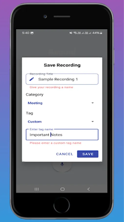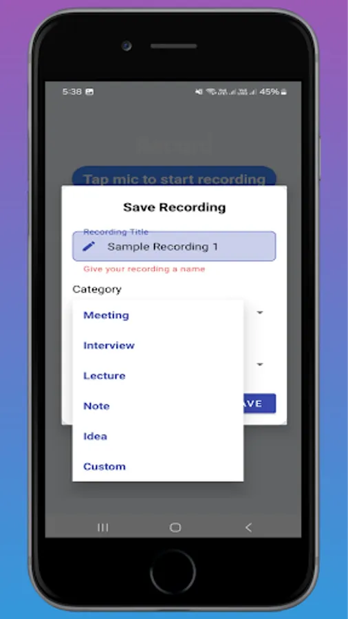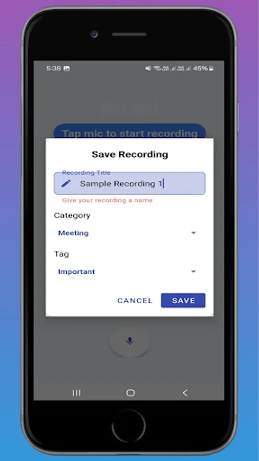 - One-tap recording with high-quality audio