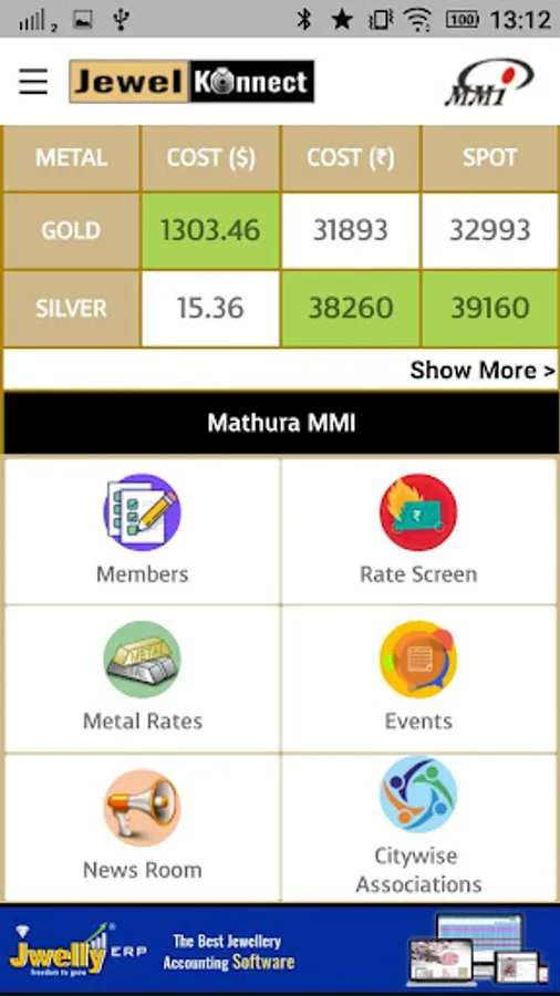 Jewel Konnect is useful for the Customer, Retail Jewellers, Wholesale Jeweller. This app will provide information or knowledge about Jewellery Metal Rates, Events, News, City-wise Association and our Executive Support. Customers can view the metal rate in their city and listed members can put their Badla rates to display the sale price of the metal.