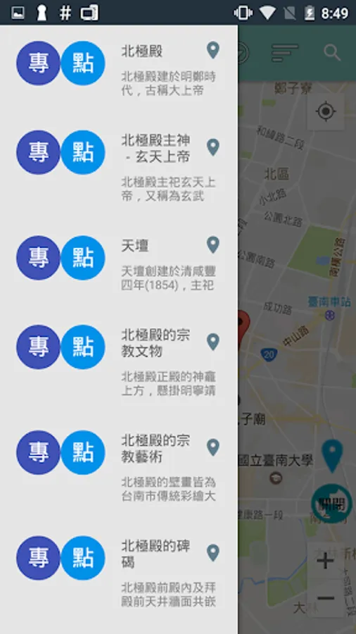 This is an APP that provides the introduction and guide of cultural assets (relics, sites, landscapes, events, characters, traditional folk customs, etc.) - Field. "Scenic spot" is the introduction of a single place, "scenic spot" is based on the guide situation, and a guided scenic spot route with regional or temporal order correlation is designed, and "scenic spot" is based on the culture of a specific area. Assets are the main axis, a group of guided scenic spots with regional relevance, "theme stories-fields" are (i) stories about related people/things/things spanning multiple times/spaces or (ii) a specific The story of people/things/things related to the field, a theme story-field designed that can contain many attractions, scenic lines and scenic spots.