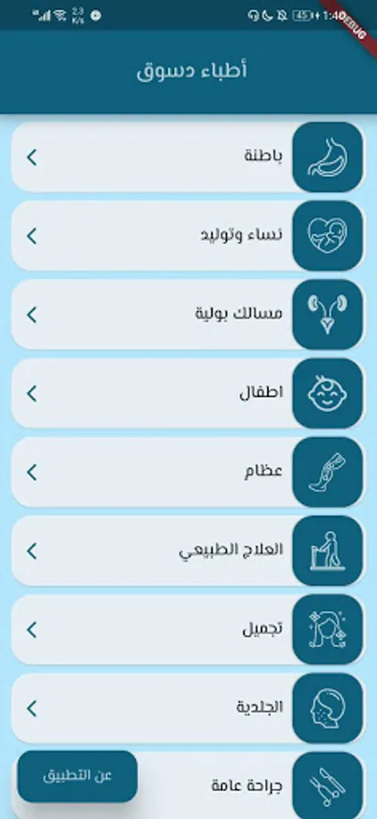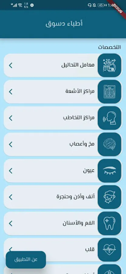 Desouq Doctors application to facilitate the search for a specific doctor in a specialty, and to know the appointments, addresses and ways to communicate with the doctor