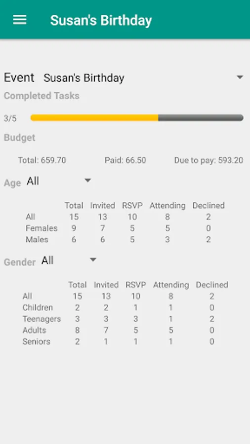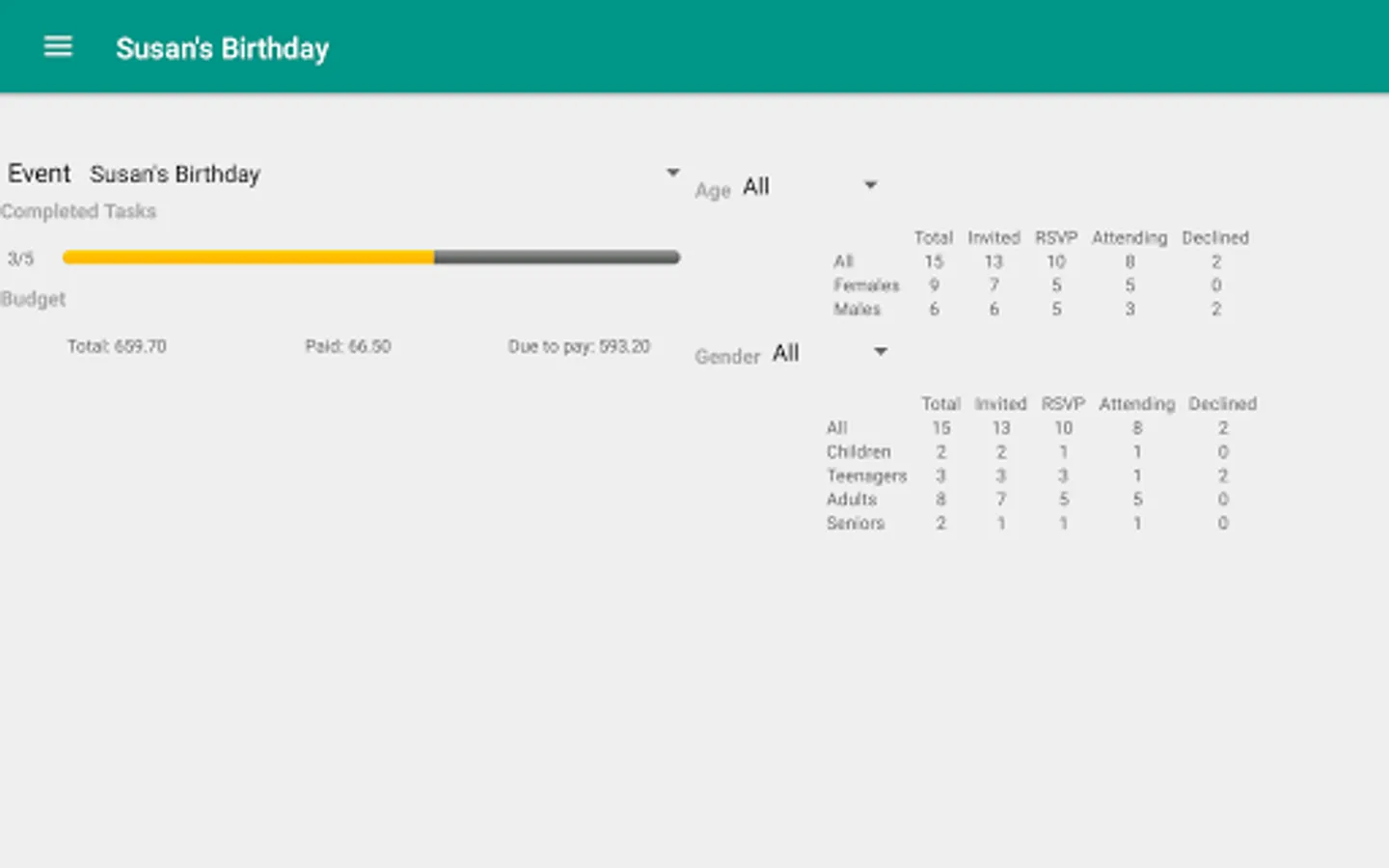 Do you have to plan a wedding, a party or any other event? Event Planner (Party Planning) may help you keep everything under control. It allows you to easily manage the guest list with details like gender, age, invitations, RSVP and attending.