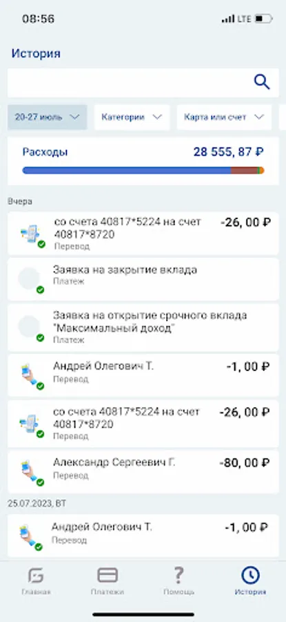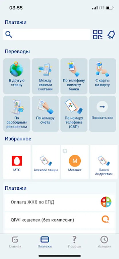 Manage accounts, cards, loans and deposits, pay for services and transfer money with one touch, view the history of transactions, create transaction templates, etc.