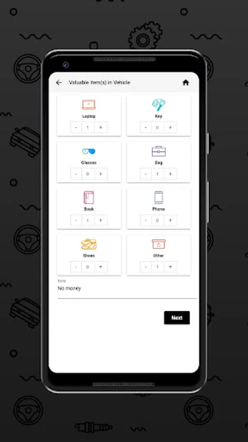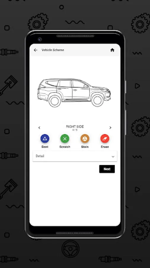 • Circle check (Walk Around Check) of vehicles with inspection templates, mobile camera, snapshots.