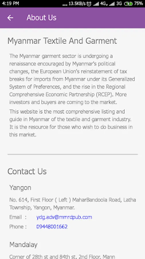 This website is the most comprehensive listing and guide in Myanmar of the textile and garment industry. It is the resource for those who wish to do business in this market.